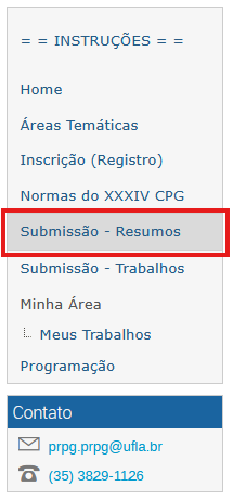 2. No menu, clique na opção “Submissão - Resumos”:
